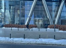 Na Placu Europejskim z budynku Warsaw Spire spadają duże bryły lodu. Na miejscu pracują strażacy oraz policja. Łukasz Kowalski