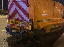 Na trasie S8 na wysokości stacji kolejowej Warszawa Toruńska na pasach tranzytowych w kierunku Marek doszło do zderzenia pojazdu służby drogowej z samochodem osobowym marki mitsubishi. Do szpitala