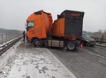 Utrudnienie w ruchu na trasie S-8 w stronę Białegostoku między Skuszewem, a Turzynem (pow. wyszkowski). Kierujący pojazdem ciężarowym wpadł w poślizg i uderzył w barierki energochłonne. Pojazd złożył
