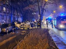 W al. Niepodległości na wysokości numeru 116 około godziny 2 w nocy doszło do poważnego wypadku. Kierujący toyotą wypadł z drogi i dachując uderzył w 4 zaparkowane samochody.