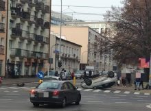 Na skrzyżowaniu Wolskiej z Sokołowską doszło do zderzenia dwóch samochodów osobowych marki renault i opel. Jedno z aut po zderzeniu wylądowało na dachu. Łukasz Kowalski
