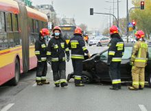 W al. Jerozolimskich pomiędzy Żelazną, a rondem Czterdziestolatka doszło do zderzenia dwóch aut, które wpadły na kolejne trzy zaparkowane samochody, kontener na śmieci, słupki i znak. Kierowca hyundaia