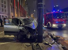 Na skrzyżowaniu Marszałkowskiej z Królewską kierujący samochodem osobowym marki BMW nie dostosował prędkości do warunków panujących na drodze i wpadł w poślizg na łuku ścinając sygnalizację świetlną dla