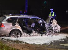 Chwilę przed godziną 3 w nocy na ulicy Chełmżyńskiej na wysokości Gwarków kierujący BMW wjechał w ogrodzenie i drzewo. Ranny pasażer został zakleszczony w pojeździe. Kierowca oddalił się