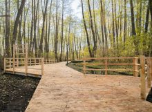 W Zespole Przyrodniczo-Krajobrazowym Olszyna powstała ścieżka z tarasami widokowymi. Z tego miejsca wywieziono ponad 80 ton starego, spękanego i pofałdowanego asfaltu. Zastąpiliśmy go drewnianą ścieżką. Łukasz Kowalski