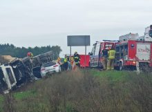 Na krajowej „7” w miejscowości Dłużniewo (pow. płoński) doszło do zderzenia samochodu osobowego marki seat i ciężarówki. W wyniku odniesionych obrażeń na miejscu wypadku zginęła 21-letnia kierująca seatem