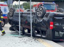 Na skrzyżowaniu Marymonckiej z Aleją gen. Marii Wittek na Bielanach doszło do zderzenia samochodu osobowego marki citroen z busem marki citroen. Po zderzeniu bus wylądował na dachu. Ratownicy