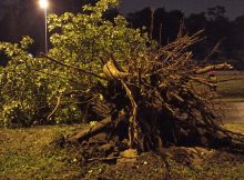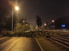 Na ulicy Odrowąża na wysokości ulicy Staniewickiej na Bródnie ogromne drzewo wyrwane z korzeniami runęło na ulicę i sieć tramwajową. Łukasz Kowalski