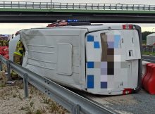 Na trasie S8 na wysokości węzła Kobyłka kierujący busem marki ford transit wjechał w barierki i dachował. Pojazd zatrzymał się na boku. Jedna osoba była badan w kartece.