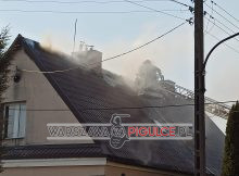 Przy ulicy Jesiennej 13 w Ursusie doszło do pożaru domu jednorodzinnego. Ogniem objęty jest dach budynku. Łukasz Kowalski