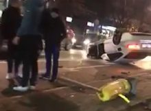 Na skrzyżowaniu Marszałkowskiej z Królewską doszło do zderzenia renault z audi. W wyniku zderzenia audi dachowało wpadając na wysepkę dla pieszych i ścinając znak i sygnalizator świetlny. Nikt