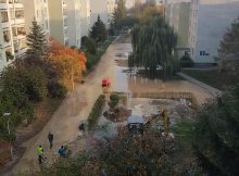 Przy ulicy Hawajskiej 3 na Ursynowie podczas prac ziemnych doszło do uszkodzenia rury wodociągowej. Woda wydobywa się spod ziemi i zalewa pobliskie tereny przy blokach. Łukasz Kowalski