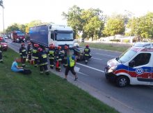 Chwilę przed godziną 7 na ulicy Żołnierskiej doszło do zderzenia audi z motocyklistą. Podczas wyprzedzania audi zderzyło się z motocyklistą. Motocyklista był reanimowany i w ciężkim stanie trafił