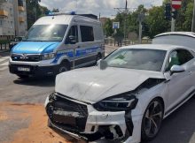 Na skrzyżowaniu Grójeckiej z Dickensa na Ochocie doszło do zderzenia dwóch samochodów osobowych marki audi i hyundaia. Jedna osoba została ranna i trafiła do szpitala. Rozbite zostało audi
