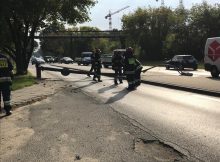 Na ulicy Płochocińskiej betonowa latarnia złamała się i spadła na jezdnię. Na szczęście nikt wtedy nie przejeżdżał i nikomu nic się nie stało. Łukasz Kowalski