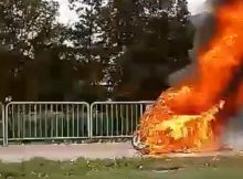 W al. Jerozolimskich na wysokości stadionu Znicza Pruszków doszło do pożaru motocykla. Łukasz Kowalski