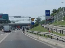 Do sytuacji doszło w sobotę na trasie S8 na na wysokości Powązkowskiej w kierunku Bemowa. Widać na zdjęciu rowerzystę jadącego trasą S8. Jeśli rowerzysta pojechałby kilkaset metrów dalej