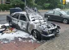 Do pożaru doszło na ulicy Elekcyjnej na Woli. Spłonął doszczętnie mercedes nadpalona została też skoda. Łukasz Kowalski