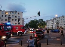 Na skrzyżowaniu Krasińskiego z Popiełuszki doszło do zderzenia trzech samochodów osobowych. Na miejscu pracują trzy zastępy straży pożarnej, policja i karetka. Dwie osoby badane są w karetce. Łukasz