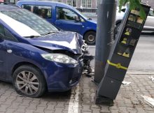 Na ulicy Chałubińskiego przed Koszykową kierujący mazdą z niewyjaśnionych przyczyn zjechał na pobocze i uderzył w słup trakcyjny i parkometr. Łukasz Kowalski