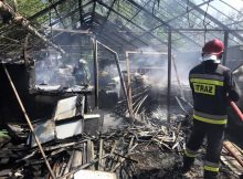 Gęsty czarny dym widoczny z miejscowości Janki to efekt pożaru wyposażenia szklarni. Nikt nie został ranny. Łukasz Kowalski