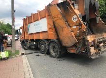 Na ulicy Zagłoby 35 w Ursusie doszło do nietypowego zdarzenia pod śmieciarką zarwał się kawałek ulicy. Pojazd lewym przednim kołem jest w dziurze na około 2 metrów szerokości