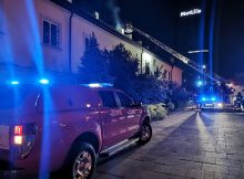 Pożar poddasza Państwowego Muzeum Archeologicznego przy ulicy Długiej 52. Trwa akcja gaśnicza. Łukasz Kowalski