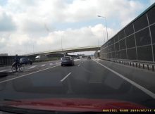 Na autostradzie A2 na wysokości Konotopy jeden z kierowców uchwycił jak jeden z rowerzystów porusza się po ruchliwej autostradzie. Nie wiadomo jak rowerzysta się tam znalazł. Łukasz Kowalski