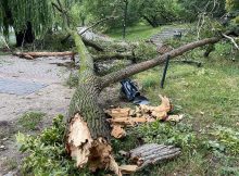 Przy ulicy Czorsztyńskiej w Parku Moczydło na Woli podczas nocnej nawałnicy runęła część drzewa, która spadła na ławkę oraz śmietnik. Cudem nikomu nic się nie stało. Łukasz Kowalski