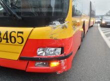 W alei Solidarności w kierunku Pl. Bankowego doszło do zderzenia autobusu linii 527 z mercedesem. Jedna z pasażerek autobusu się przewróciła i doznała obrażeń, została przewieziona do szpitala.