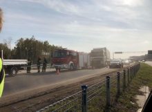 Na S8 na wysokości Nowego Jankowa doszło do kolizji samochodu ciężarowego z samochodem z naczepą, policja uznała to za kolizję. Na miejsce przyjechał Zarząd dróg miejskich i autostrad,