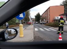 Na skrzyżowaniu Żurawiej i Kruczej doszło do zderzenia Mitsubishi z Chevroletem. Na miejscu pracuje policja i pogotowie ratunkowe, które bada poszkodowanych. Łukasz Kowalski