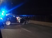 Most Poniatowskiego w kierunku Pragi jest całkowicie zablokowany po wypadku samochodu osobowego marki BMW. Łukasz Kowalski
