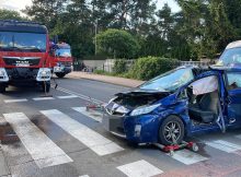 Na skrzyżowaniu al. Legionów z Mireckiego w Legionowie doszło do zderzenia samochodu osobowego marki toyota (taxi) z samochodem ciężarowym marki man (betoniarka). Kierująca z taksówki była zakleszczona. Strażacy