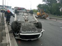 Na ulicy Górczewskiej 124 na Woli doszło do zderzenia samochodu osobowego marki toyota oraz koparki. Kierujący toyotą obywatel Gruzji najechał na gąsienice koparki i wylądował na dachu. Nikomu