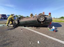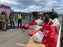 Na trasie S8 na wysokości miejscowości Nowy Janówek w kierunku Białegostoku kierujący pojazdem dostawczym marki fiat zasnął za kierownicą uderzył w barierki i wylądował na boku. Nikomu nic