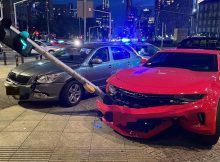 Wczoraj wieczorem na Rondzie ONZ doszło do zderzenia dwóch samochodów osobowych marki skoda i chevrolet. Po zderzeniu sportowe auto wjechało w sygnalizator świetlny dla pieszych. Nikomu nic się