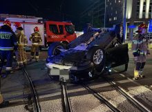 Na skrzyżowaniu Andersa z ulicą Muranowską w Śródmieściu doszło do zderzenia dwóch samochodów osobowych marki volkwagen i ford. W wyniku zderzenia ford dachował i zablokował tory tramwajowe. Jedna