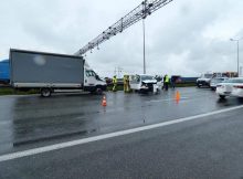 Na krajowej „7” w miejscowości Palmiry w kierunku Gdańska doszło do zderzenia motocyklisty z samochodem osobowym marki kia. Do szpitala trafiły dwie osoby; kierująca autem osobowym oraz kierujący