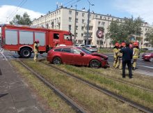 Na skrzyżowaniu Popiełuszki z Krasińskiego na Żoliborzu doszło do zderzenia dwóch samochodów osobowych marki ford i mazda. Po zderzeniu mazda wpadła na torowisko tramwajowe. Łukasz Kowalski