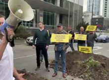 Rolnicy z Agrounii protestują na ulicy Grzybowskiej na Woli. Podczas protestu podjechała ciężarówka, gdzie następnie na jezdnię wysypano ziemię. Łukasz Kowalski