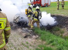 Po godzinie 6 przy ulicy Wynalazek na Mokotowie doszło do pożaru samochodu dostawczego, który był zaparkowany w pobliżu foli technicznych na budowie. Kłęby czarnego dymu było widać z