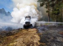 W miejscowości Stróżki (pow. wołomiński) podczas wycinki drzew doszło do pożaru pojazdu harvaster. Pojazd był cały w ogniu, zajęła się od niego ściółka leśna. Nikomu nic się nie
