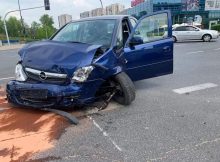 Na skrzyżowaniu al. KEN z Gandhi na Ursynowie doszło do zderzenia dwóch samochodów osobowych marki opel i audi. Po zderzeniu jedno z aut uderzyło w znaki. Nikomu nic