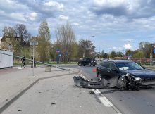 Na ulicy Marywilskiej na wysokości numeru 60 doszło do zderzenia trzech samochodów osobowych. Jedno z aut uderzyło w latarnię. Kobieta była uwieczniona w aucie. Łukasz Kowalski