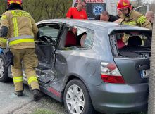 Na skrzyżowaniu Ulicy Rzecznej i Starej w Nadmie (pow. wołomiński) doszło do zderzenia trzech pojazdów i potrącenia dwóch osób. Dwie osoby jadące busem marki peugeot zostały zatrzymane. Na