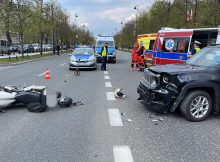 W al. Ujazdowskich na wysokości KPRM doszło do zderzenia samochodu osobowego marki JEEP z motocyklem. Dwie osoby podróżujące motocyklem zostały ranne (kierowca oraz pasażerka). Na miejscu pracują służby.