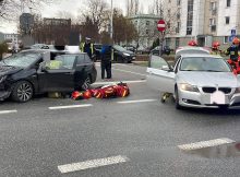 Na skrzyżowaniu Marwilskiej z Kupiecką na Białołęce doszło do zderzenia trzech samochodów osobowych marki BMW i dwóch toyot. Dwie osoby zostały ranne i trafiły do szpitala. Na miejscu