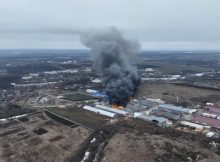 Rosyjski samolot zrzucił bomby na wioskę w pobliżu Charkowa. W ogniu jest fabryka drzwi. Trwa akcja gaśnicza. Łukasz Kowalski