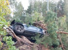 Na ulicy Niemcewicza w Wesołej kierujący samochodem osobowym marki volvo stracił na łuku drogi panowanie nad autem i z dużą prędkością uderzył w dwa drzewa. Na jednym z